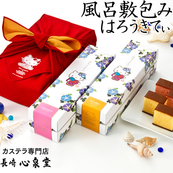 [ ハローキティ お中元 プレゼント お菓子 ギフト 子供 ] 夏 あさがお はんなりきてぃ 長崎カステラ 風呂敷包み セット [ 小学生 和菓子 かわいい おしゃれ グッズ キティちゃん キティーちゃん 誕生日 手土産 スイーツ キャラクター 内祝い ]TC00