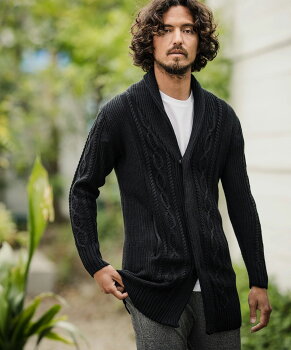肉厚のウール混の糸でケーブルニットに仕上げたガウンコートです。